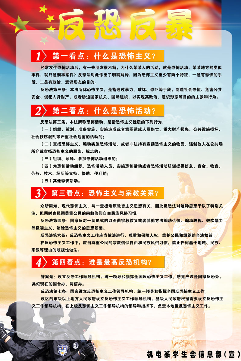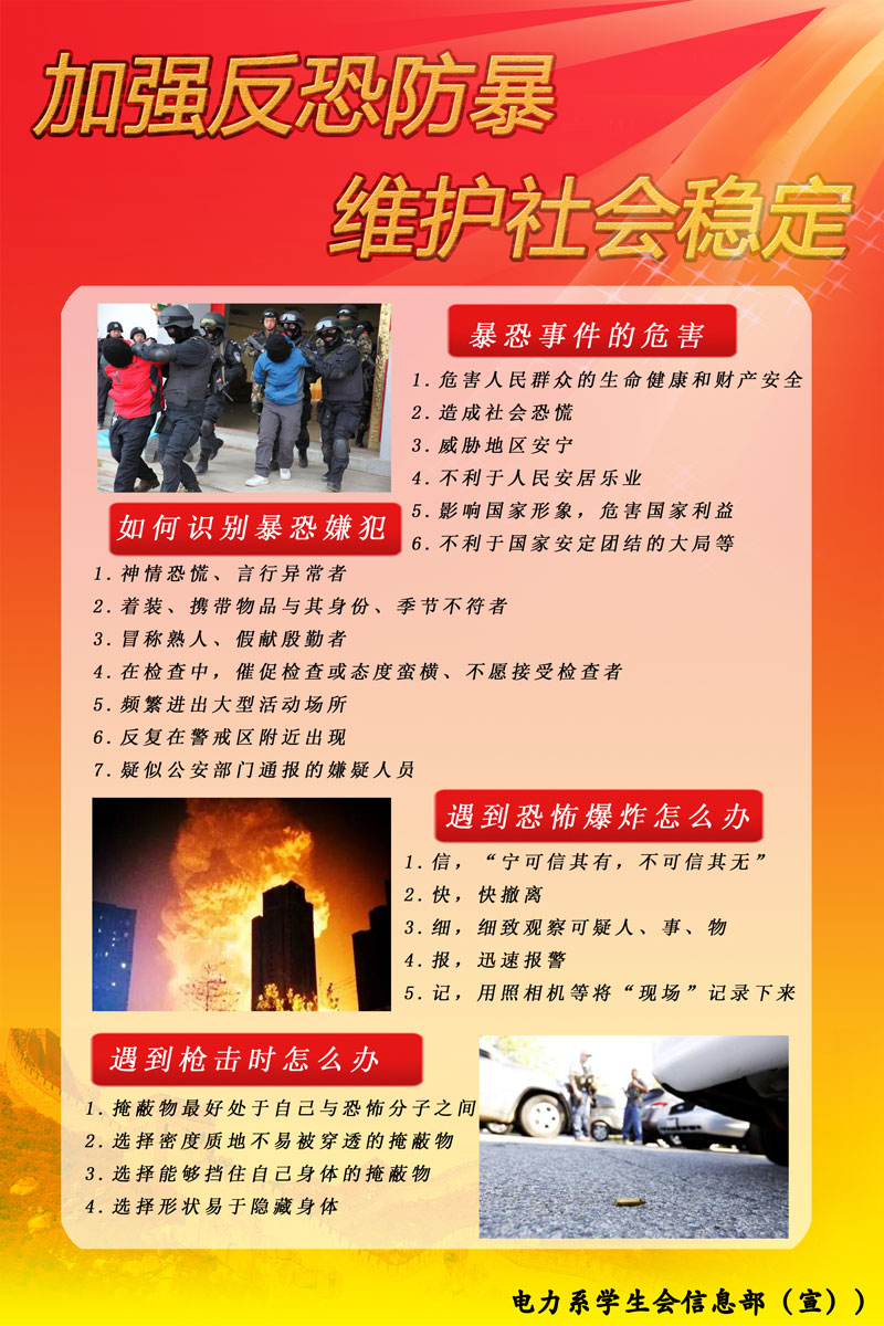 信息部开展3月反恐防暴月主题教育电子海报展(图)