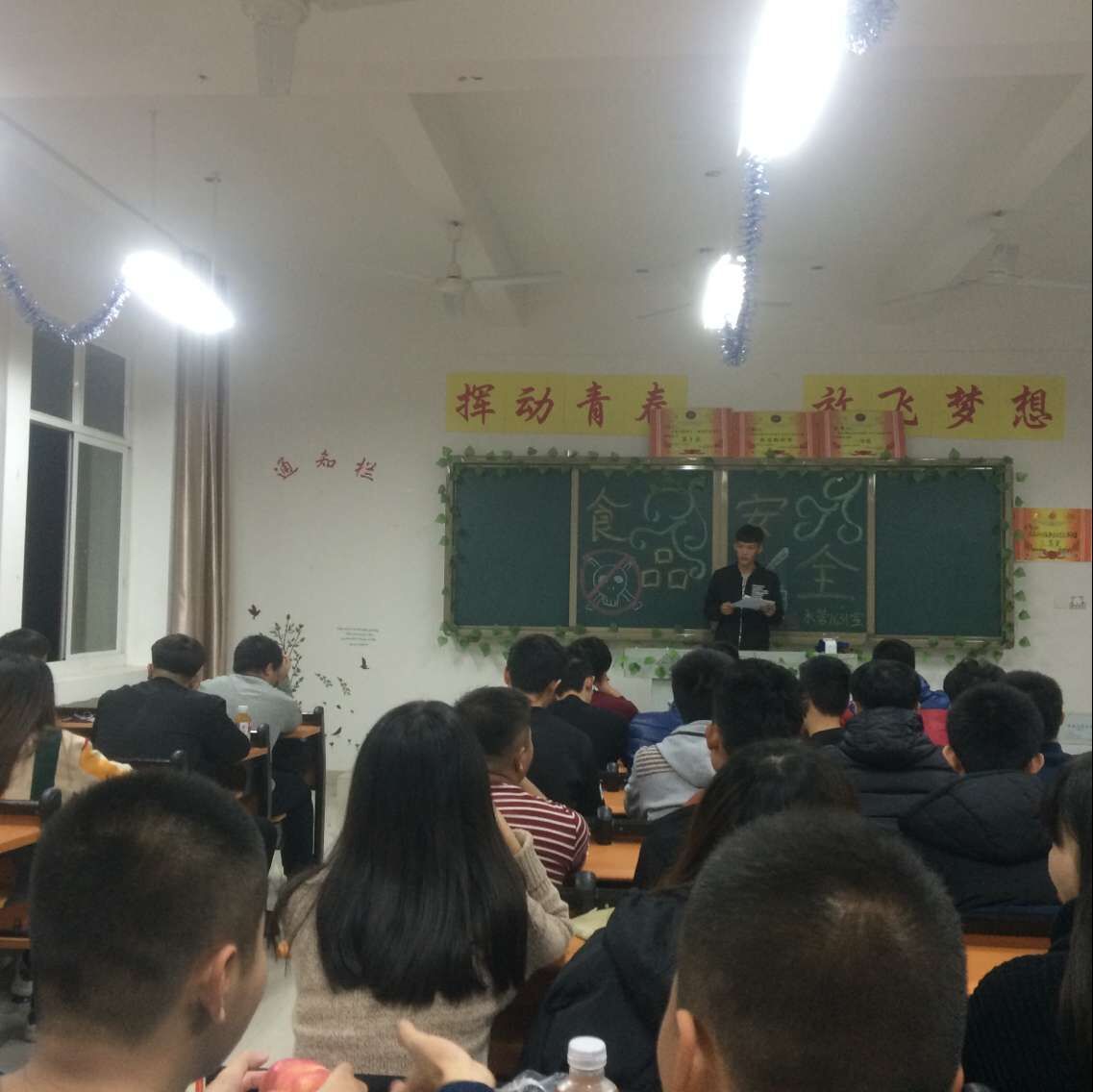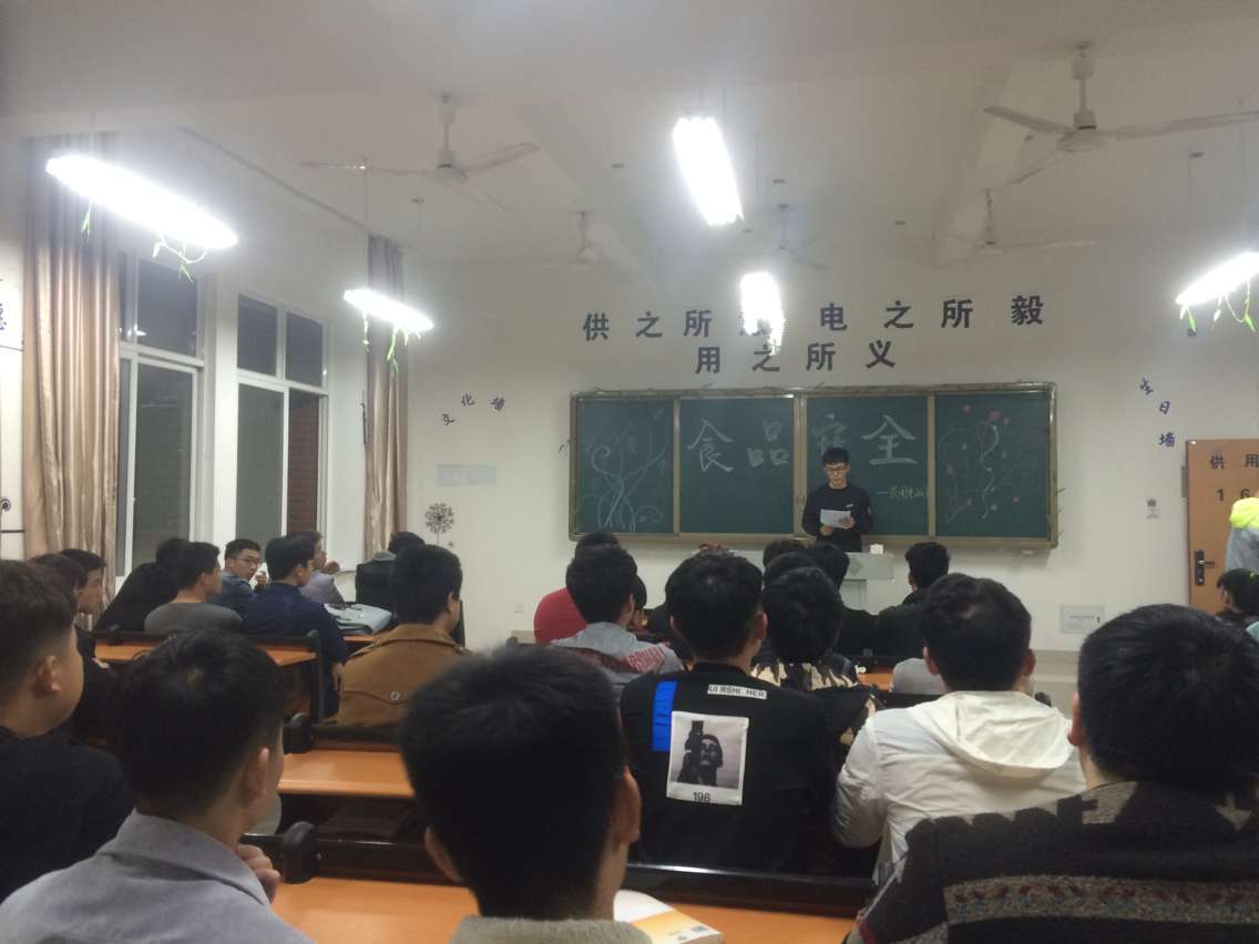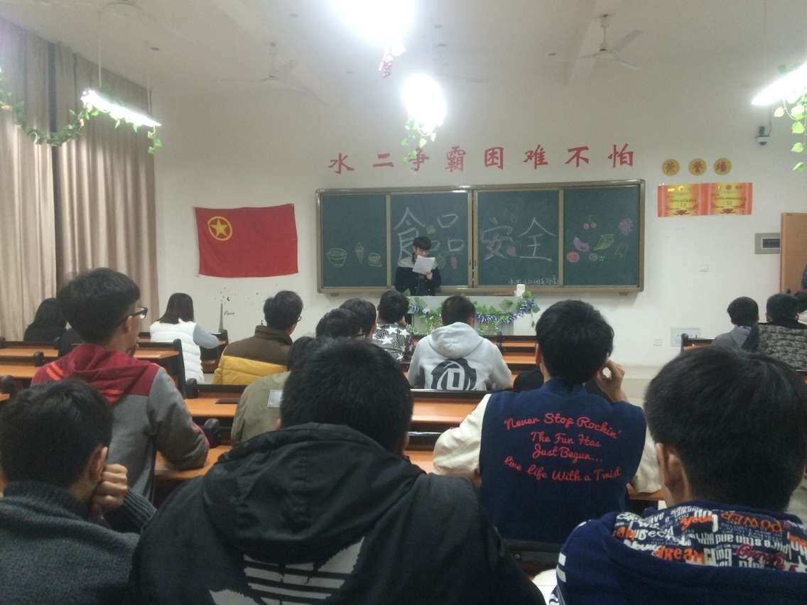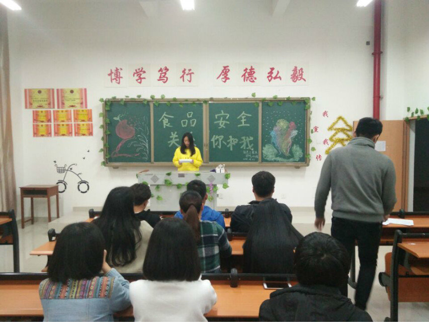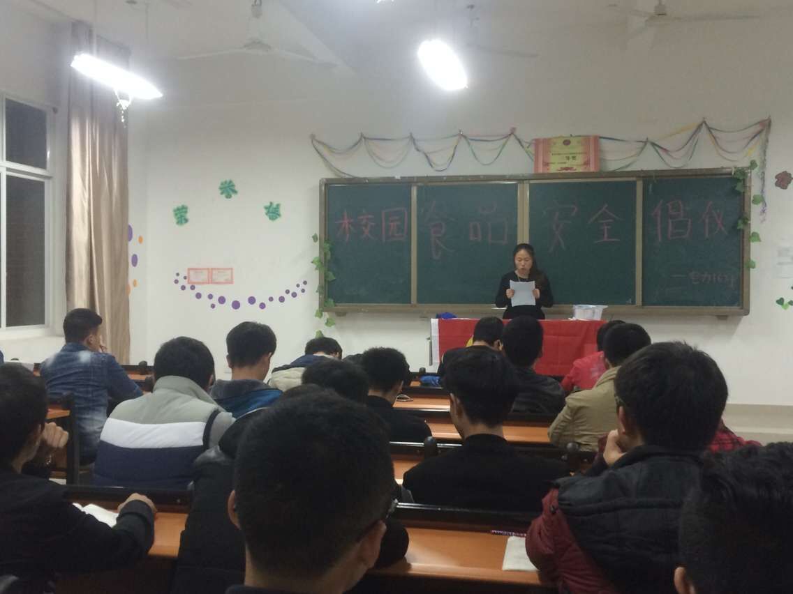 各班级召开“食品安全”主题教育学习会,团支书通过宣读“关心食品安全 享受健康生活”倡仪书的方式向同学们宣传食品安全方面的常识,使同学们进一步认识到食品安全的重要性,树立食品安全意识,对食品能进行选择和鉴别,从精神上远离安全隐患,健康成长。