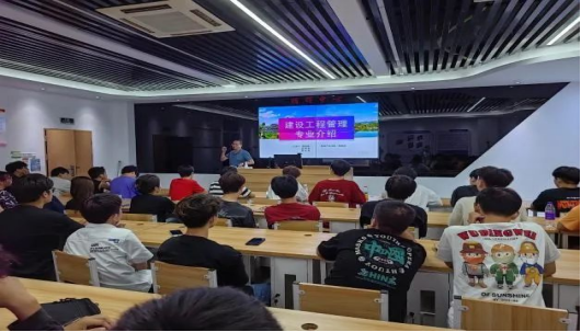 会上,蔡英锋、雷佳煜老师先进行了简单的自我介绍,随后为建设工程管理专业的同学们介绍了本专业的基本信息,结合人才培养方案,着重解读了本专业的培养目标、课程体系以及毕业要求,接着讲述了专业的发展趋势与就业前景,并指导同学们如何做好学习规划,明确学习方向。最后,鼓励同学们在大学期间可以多获得相关技能证书,为以后的就业打好基础。