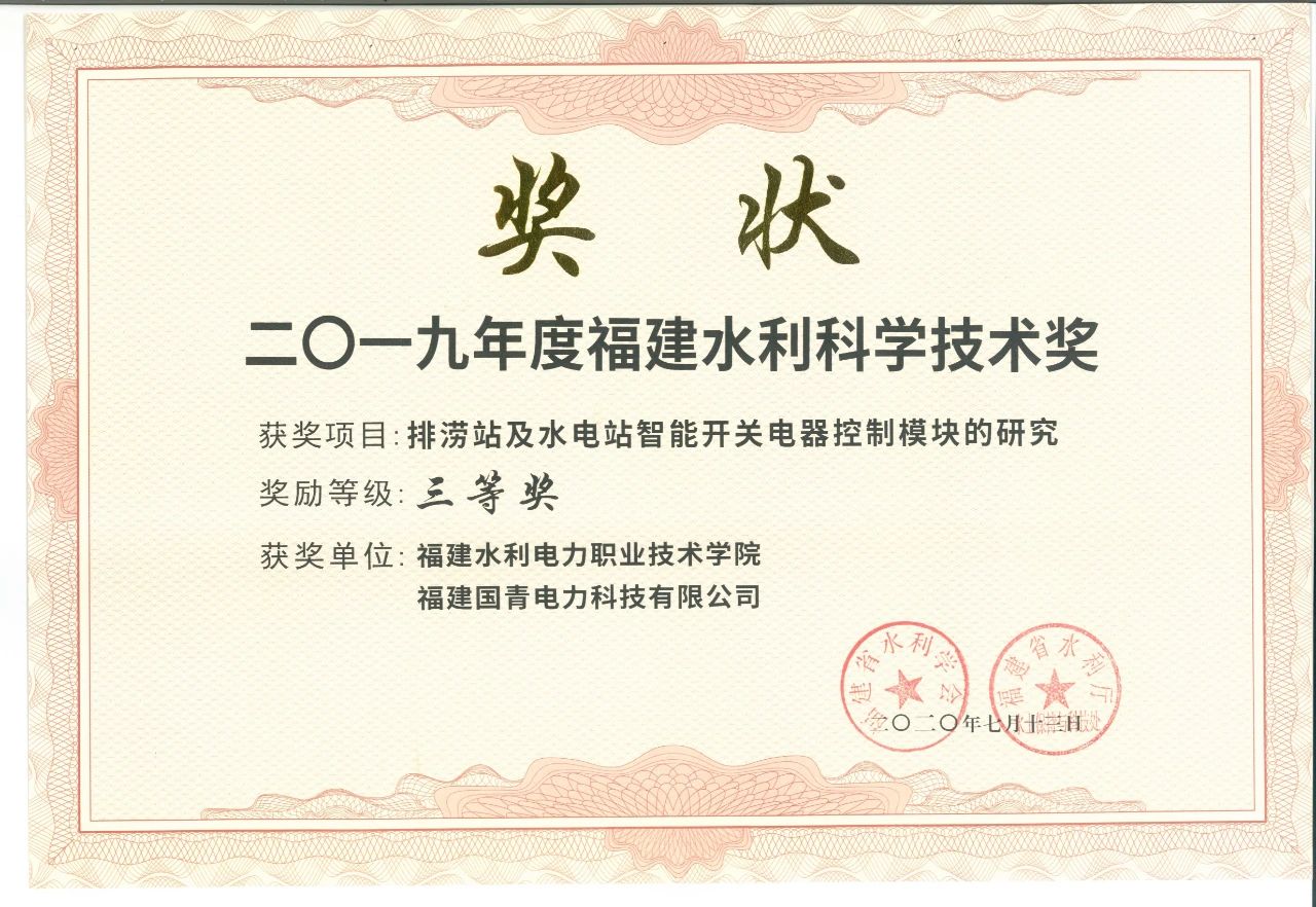 日前,福建省水利学会公示了2019年度福建省水利科学技术奖的通知,我院电力工程系的科研成果《排涝站及水电站智能开关电器控制模块的研究》获得三等奖。