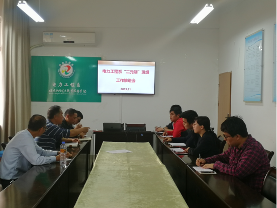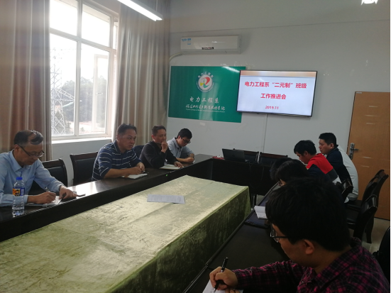 为了更好的办好“二元制”技术技能人才培养工作,电力工程系系主任林世治、副主任朱文强以及各“二元制”班班主任于2019年11月13日16:00召开“二元制”技术技能人才培养工作推进会