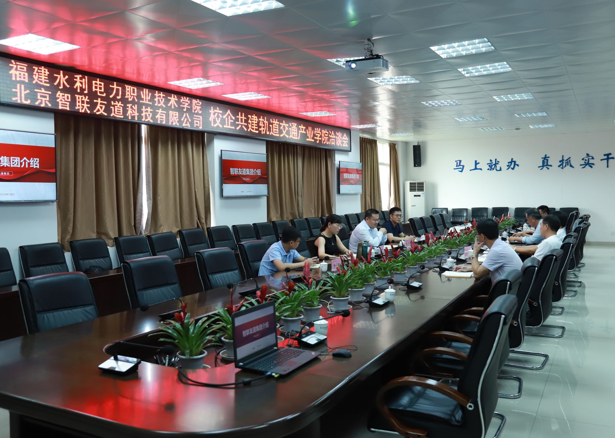 5月12日,北京智联友道科技有限公司执行总裁高滨、执行总裁助理林晓明、营销中心副总经理林广桂、区域销售经理江鸿斌等专程来校洽谈校企合作事宜,共商成立轨道交通产业学院。学院党委书记庄伟廉,副院长杨武盖,教务处处长包晓晖、电力工程系主任林世治等参加了洽谈会。
