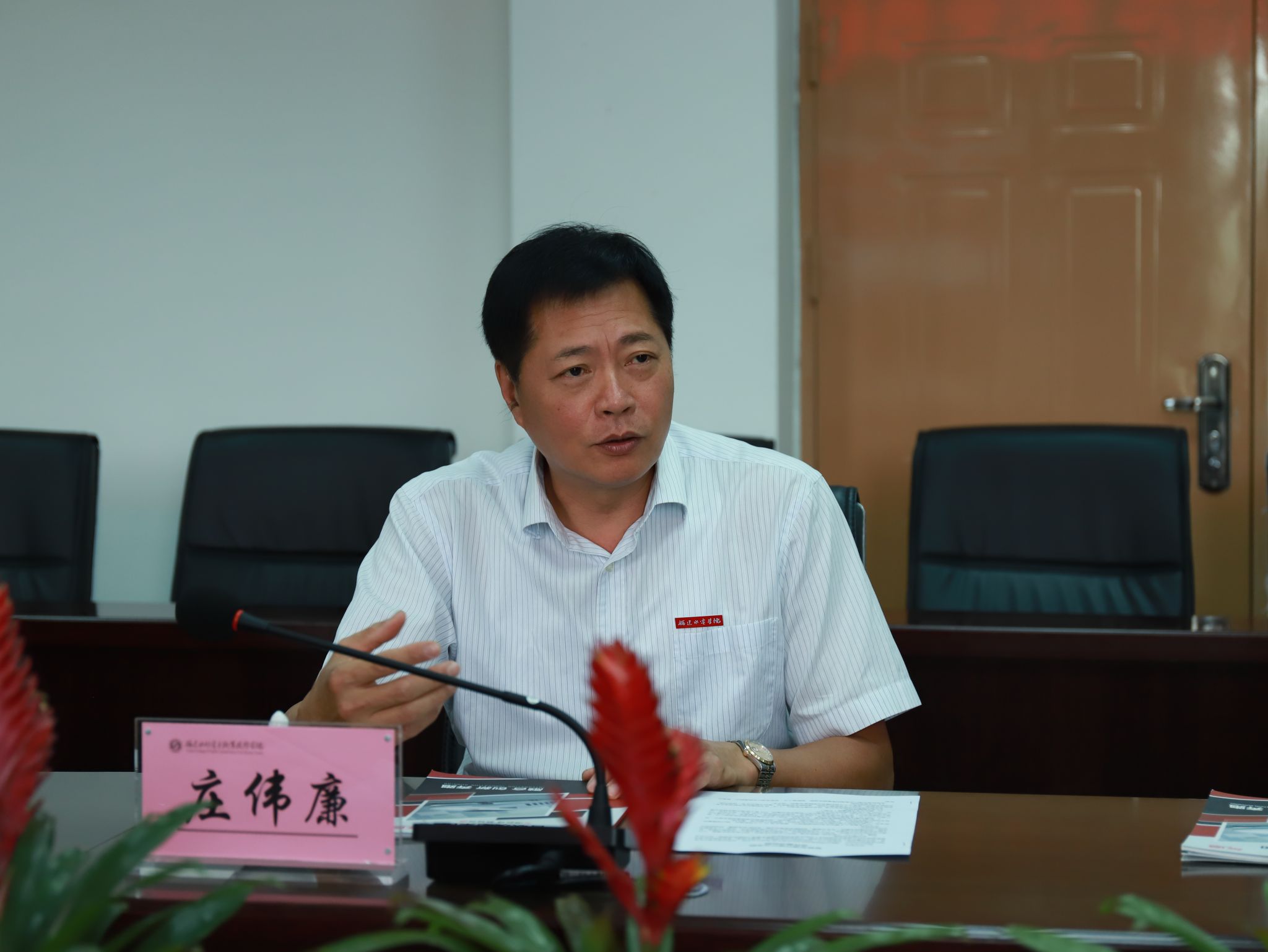 庄伟廉代表学院对北京智联友道科技有限公司的到来表示欢迎,并指出学院与北京智联友道科技有限公司探讨共建轨道交通产业学院,是贯彻落实国务院印发的《国务院办公厅关于深化产教融合的若干意见》提出的“深化‘引企入教’改革,鼓励企业依托或联合职业学校、高等学校设立产业学院和企业工作室、实验室、创新基地、实践基地”的具体实践,是深化产教融合的重要举措。在福建省轨道交通快速发展的形势下,轨道交通高级技能人才更紧缺。他希望能借助智联友道科技有限公司的平台,推动学科顶层设计和轨道专业群建设,利用企业、产教联盟平台进一步培养高水平技能人才,让师生受益,为学院增光。