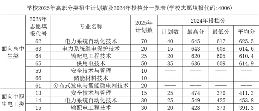 电力工程学院2025年高职分类考试招生批次志愿填报