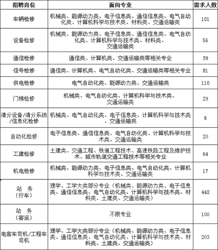 (三)电客车/工程车司机岗位要求男身高不低于168cm,不高于190cm;双眼矫正视力不低于1.0(5.0)或裸眼视力不低于0.8(4.9);站务要求男身高不低于165cm、女身高不低于155cm;