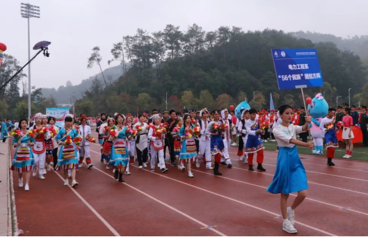电力“56个民族”团结方阵,他们以“民族大团结”为主题。代表藏族、苗族、畲族、侗族、壮族等56个民族。
