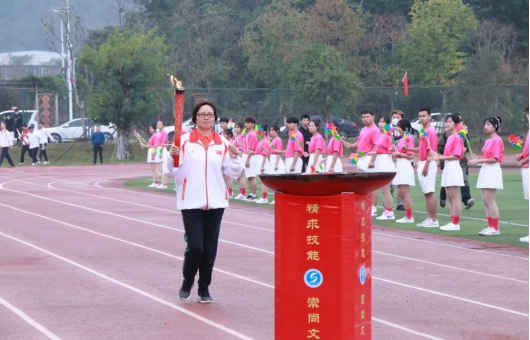 星星之火,可以燎原。火炬在火炬手们的手上传递,由学院党委副书记黄瑞梅老师接过最后一棒火炬并点燃运动会圣火。