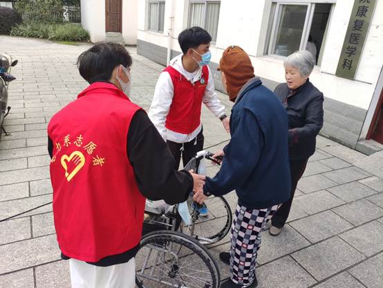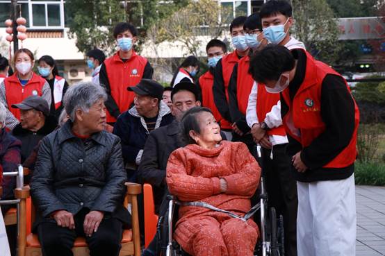 在阳光下,志愿者细心搀扶着老人缓缓前行,面对着与自己分享着校园趣事的志愿者,老人们也敞开了的心扉讲起了自己的过去。