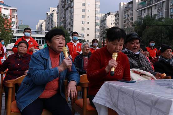 院子里,志愿者唱起了歌曲《爱拼才会赢》,两位老人也不甘示弱为大家唱起了经典的闽南语歌曲,美妙的歌声赢得了全场的掌声。