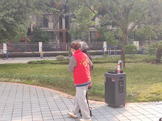 志愿者俯身询问老人最近心情如何,“心情呀,和今天的阳光一样好,最近身子骨也棒得很呢”老人看向了志愿者年轻的脸庞,咧开了嘴说着“我在外读书的孙女和你们年纪差不多大,也像你这样爱笑”。