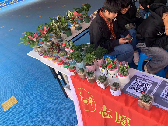 志愿者们早上就在场地摆放和布置商品,在活动中,我们通过售卖水院纪念品(水宝、灯箱、水院定制文具礼盒、圣非亭和校史馆书签、明信片、尺子、水院定制帆布包)和小盆栽的全部资金捐献给孤儿院的小朋友们。