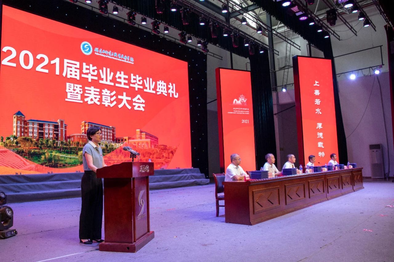 青春向上,吾辈向前。6月18日上午,学院2021届毕业典礼暨表彰大会在路港体育馆隆重举行。学院在家领导出席典礼。党政办公室、教务处、学生工作部、团委等职能部门负责人,水利工程系、电力工程系、信息工程系党政团负责人,毕业班辅导员和2021届毕业生及家长代表等近2000人参加了典礼。学院党委副书记黄瑞梅主持大会。