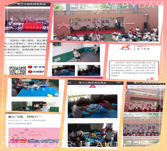 3.助困——你的未来不是梦”组织特校同学进大学校园活动,带领孩子进入大学校园,参观学校美丽的校园、舒适的宿舍、宽敞的运动场,深入图书馆、教室、实验室,领略大学的环境和风采,极大的激发了孩子们的学习热情,使他们对未来增添了许多美好的憧憬。为残疾儿童将来“走出特校,融入社会”做准备,同时也有利于全院学生认识特校,吸引更多的同学参与这项有益的活动中来。