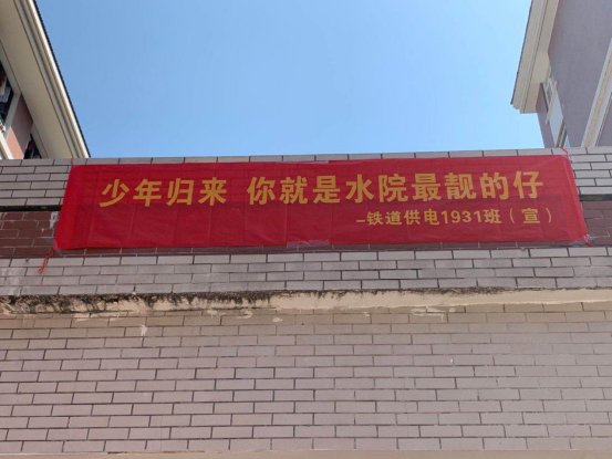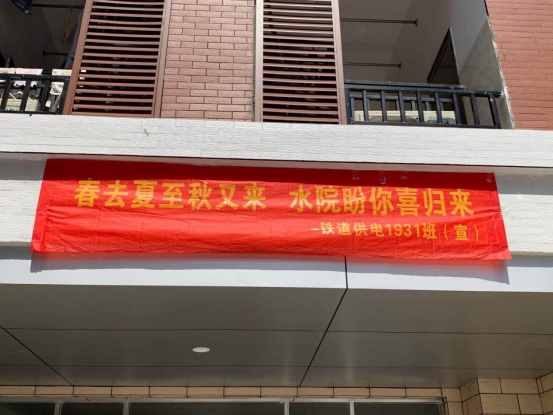 横幅是校园中最靓丽的风景线之一,通过暖心的横幅让同学们内心充满对于校园生活的向往,展现出水院学子对于学院的热爱以及对于即将到来的新生的美好祝福。