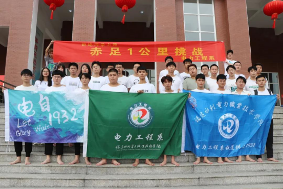 电自1932班和铁道供电1931班同学为了响应环保行动,进行了“赤足一公里”行动。