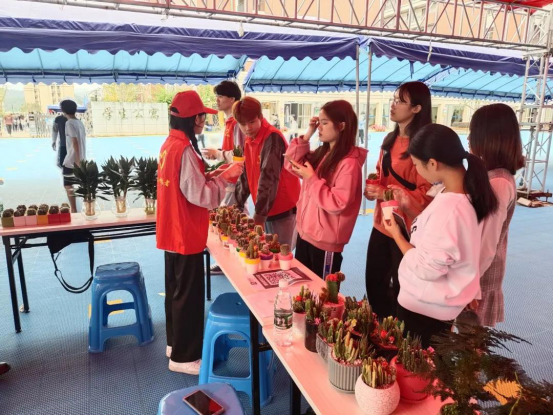 多肉盆栽、观景植物也同样吸引着大家,过路的同学欣赏着这些植物,碰到心喜的同样也是出手购买,买回去装饰自己桌面也可以好好陶冶情操~