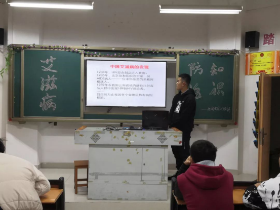 主持人精心准备了有关‘‘艾滋病预防识’’的ppt和视频,他们认真的向同学们宣传艾滋病预防知识,使同学们意识到艾滋病不再是一种与己无关的疾病,它就真实存在于自己的周围。