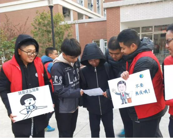 寒冷正向我们伸出魔爪,为了让芊芊学子们脱离被窝对我们的封印,不让学子们在迟到边缘徘徊。电自1931班的志愿者们在学生上学时间向学生们进行对起床困难户抢救的宣传计划,呼吁大家早睡早起,拒绝起床困难户。