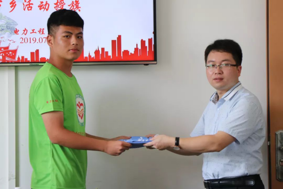 会议的最后,许培德老师为本次大学生“三下乡”活动授旗。电力工程系的老师与同学们将用行动收获感动与快乐。