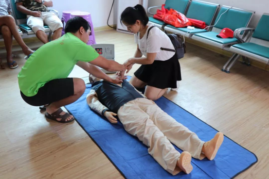 为了使当地居民更加了解急救知识,实践团的同学们与老师以通俗易懂的语言向村民们介绍急救知识,并进行现场教学,以及让村民们进行模拟急救,让村民们更直观的了解急救。