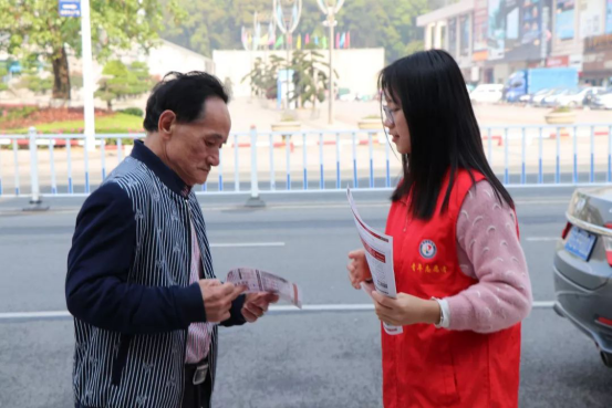同学们发放志愿活动传单,细心解释活动内容,用热情与微笑感染市民们,为市民们服务。“自私对己,无私为人”,以实际行动缅怀雷锋同志。