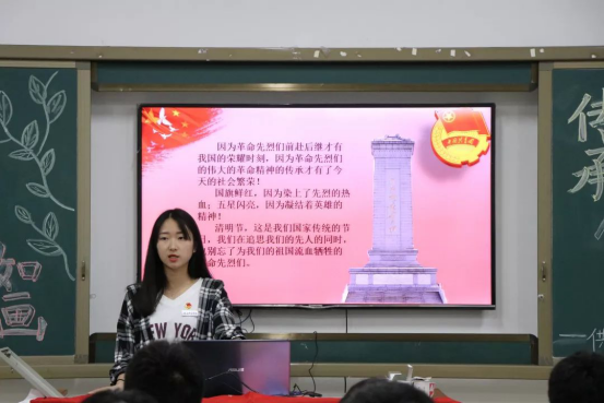 开展的班会上,同学们学习和回忆英雄先烈们的伟大事迹,以此来缅怀英雄先烈们。一个个令人心中涌起热潮的红色革命故事,记录着祖国的成长。先烈们用自己的生命成就了祖国今天的和平,所以作为新时代青年的我们,应该以英雄先烈们为榜样,超越自己!