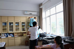 最后同学们,分成了三个小组,配合默契的,在短短的半个小时内就将电力工程系和机电工程系办公室内空调清洗完毕。