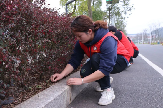 志愿者集合准备就绪后,针对道路两旁的绿化带及菜地进行了“拔草护绿”活动。志愿者们用行动诠释了“奉献、友爱、互助、进步”的志愿精神。