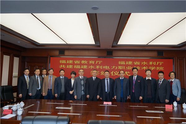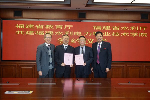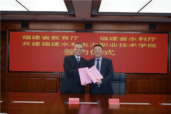 29日上午,福建省教育厅与福建省水利厅共建福建水利电力职业技术学院签约仪式在福州隆重举行。省教育厅副厅长陈国龙、省水利厅副厅长丘汀萌分别代表教育厅和水利厅签署了共建协议。省水利厅副巡视员黄明聪,福建省水利学会理事长连伟良,福建水利水电勘测设计研究院党委书记郭武,学院党委书记庄伟廉、院长杨元挺出席签约仪式。