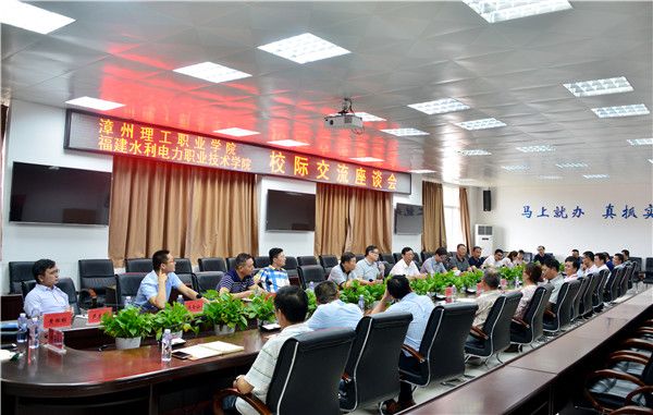 7月5日,漳州理工职业学院校长金潇明一行18人到我院考察交流。学院党委书记庄伟廉,党委副书记黄瑞梅,副院长池长全、杨武盖及相关处室负责人参加座谈会。