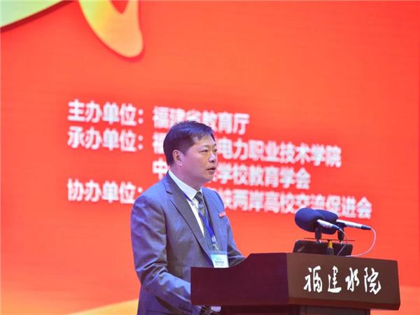 福建省教育厅副厅长陈国龙在年会上致辞。他指出,两岸同胞一家亲,有着共同的血脉、共同的文化、共同的愿景,开展两岸教育交流与合作时间早、形式多、领域广、规模大。近年来,职业教育强调特色办学与产教融合、创新校企合作模式,依托互联网信息技术创新教学新模式,运用大数据提升学校管理能力,已是职业教育改革发展的新趋势。他希望两岸职业院校进一步携起手来,顺应潮流,加强合作,推动应用技术型人才的培养,助力“新福建”的建设,并期待能通过本届年会的共同研讨,能在产教融合、新兴学科专业对接、师资联合培训等方面促进深度合作和融合。
