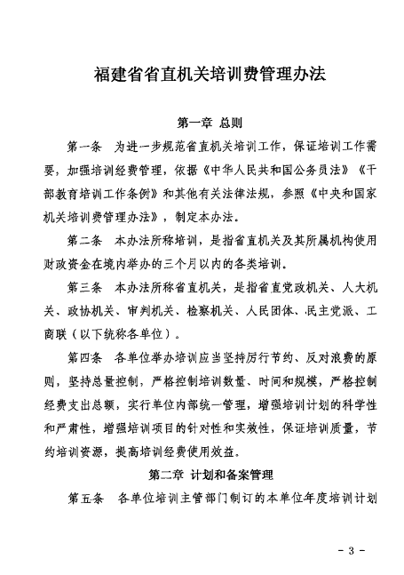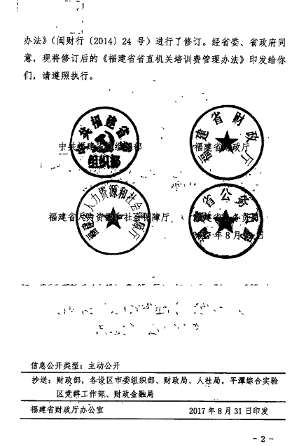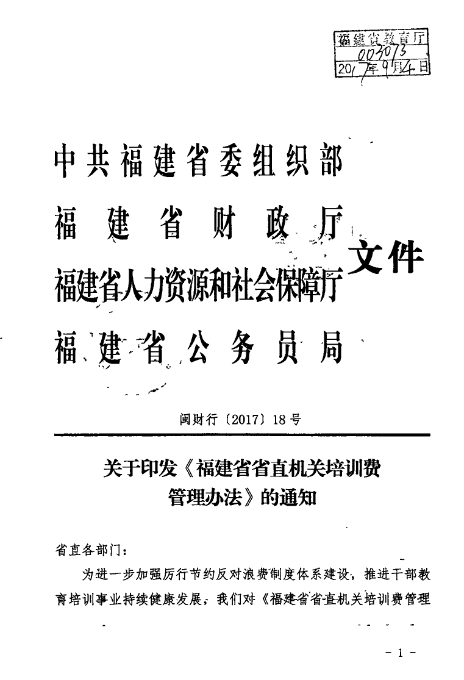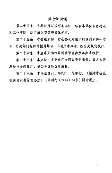 20170918闽财行【2017】18号省直机关培训费管理办法