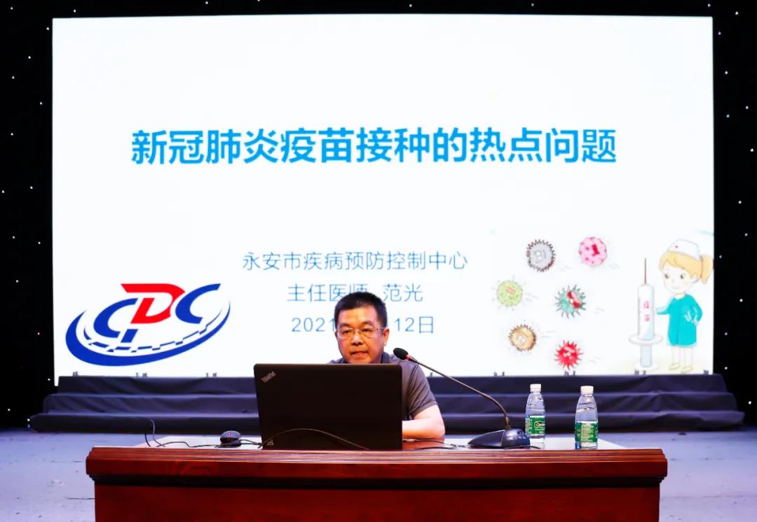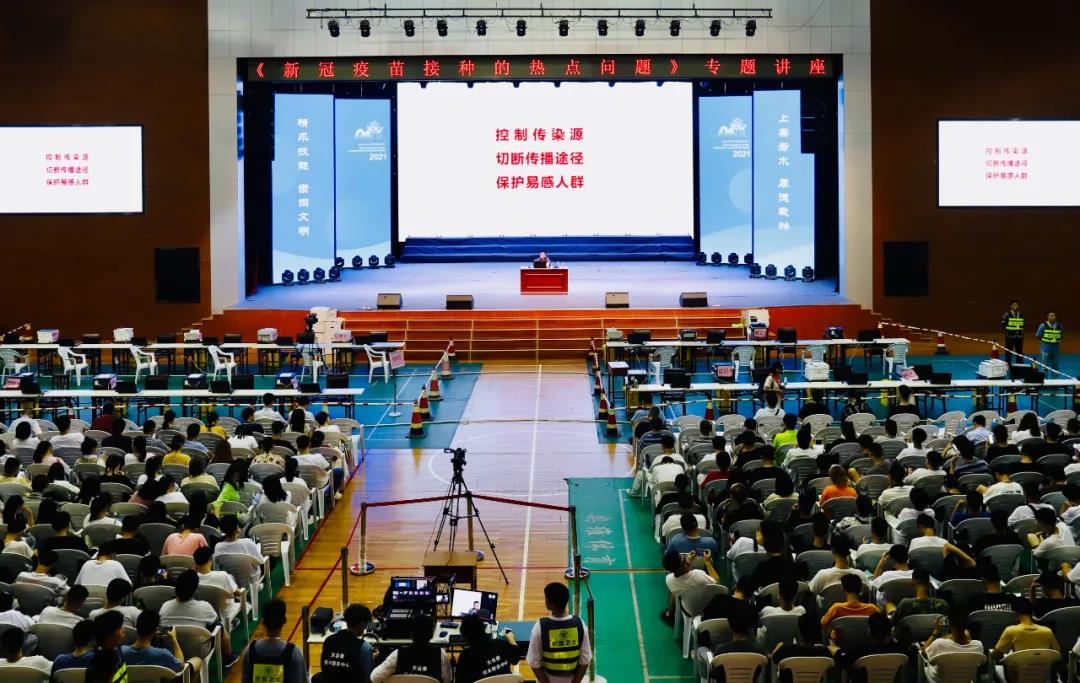 为扎实做好全院师生新冠病毒疫苗接种工作,筑牢校园防疫屏障,5月12日下午,学院特邀永安市疾控中心主任医师范光作《新冠疫苗接种的热点问题》专题讲座。讲座在路港体育馆设主会场,在综合楼小舞台及各教室设分会场,学院共4000余名师生聆听了讲座。讲座由学院副院长李建平主持。