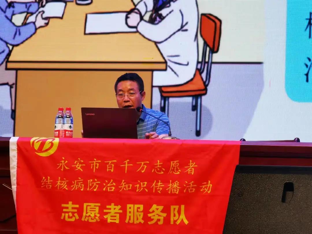 永安市疾控中心副主任医师李杭生、主治医师张晶负责授课。通过具体的图文展示,对肺结核及学校新冠肺炎疫情防控进行深入浅出的讲解,并通过观看视频的形式对师生们进行防艾宣传。