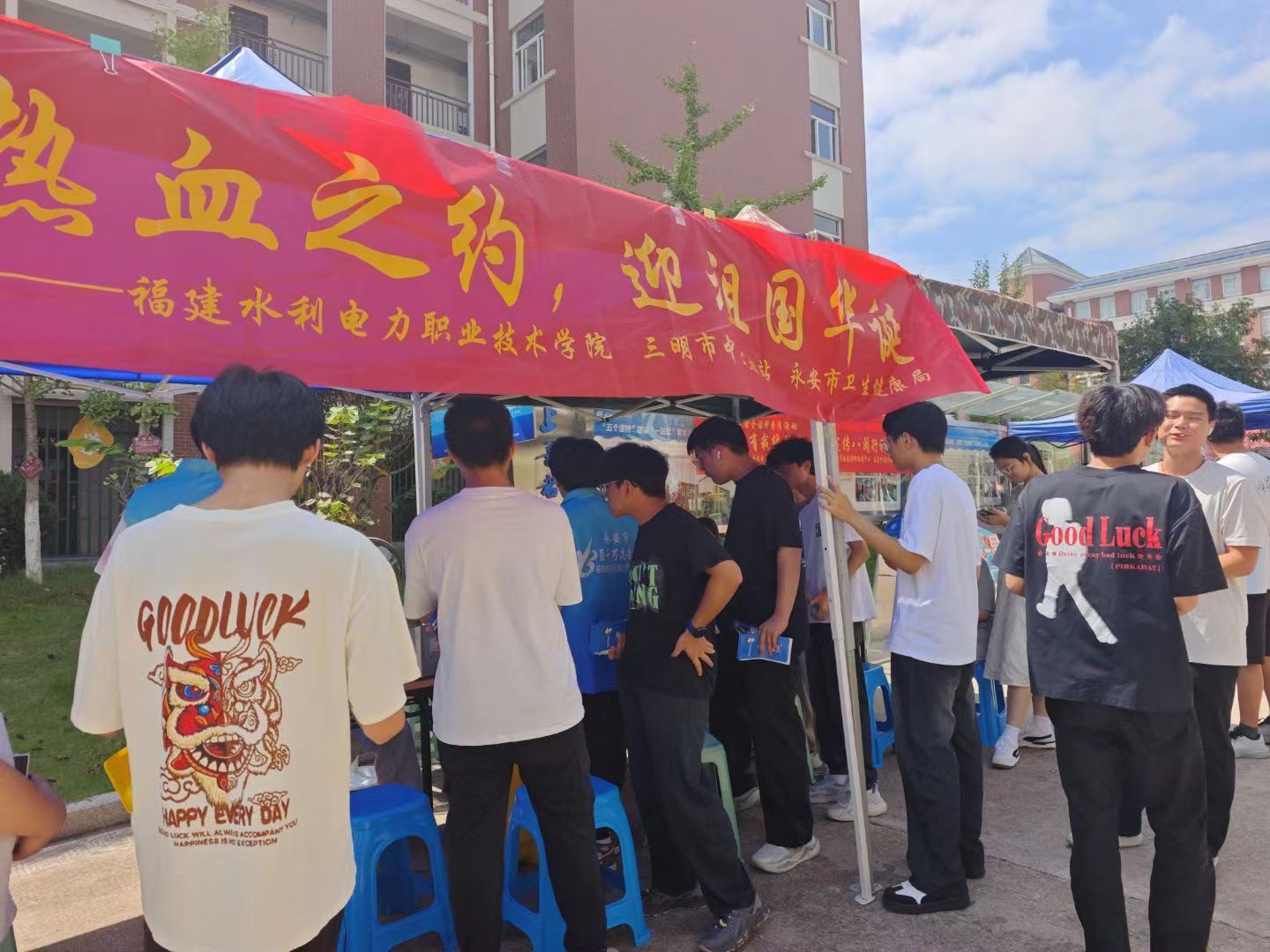 9月27日,在祖国76周年华诞即将到来之际,我校携手三明市中心血站、永安市卫生健康局在一站式学生社区宿舍楼十字路口举办“以热血之约,迎祖国华诞”无偿献血活动,以公益行动礼赞祖国。