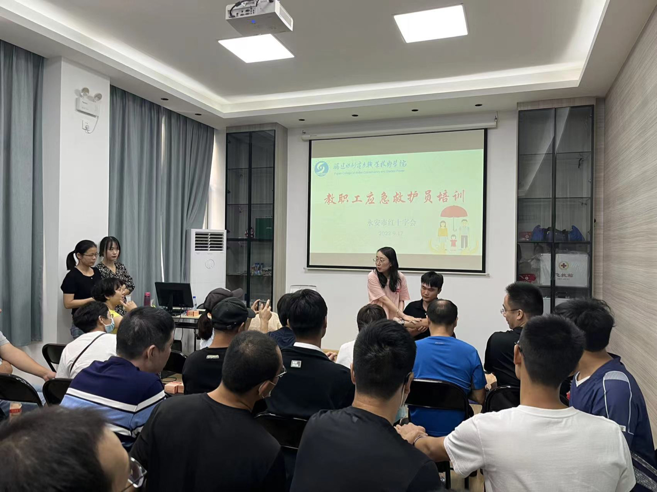 为深入推进平安校园建设,强化学院应急救护知识普及,9月17日上午,学院和永安市红十字会联合在永安市红十字博爱驿站举行首批教职工应急救护线下实践操作培训。共有30名师生参加培训,学院副院长李建平出席本次培训。