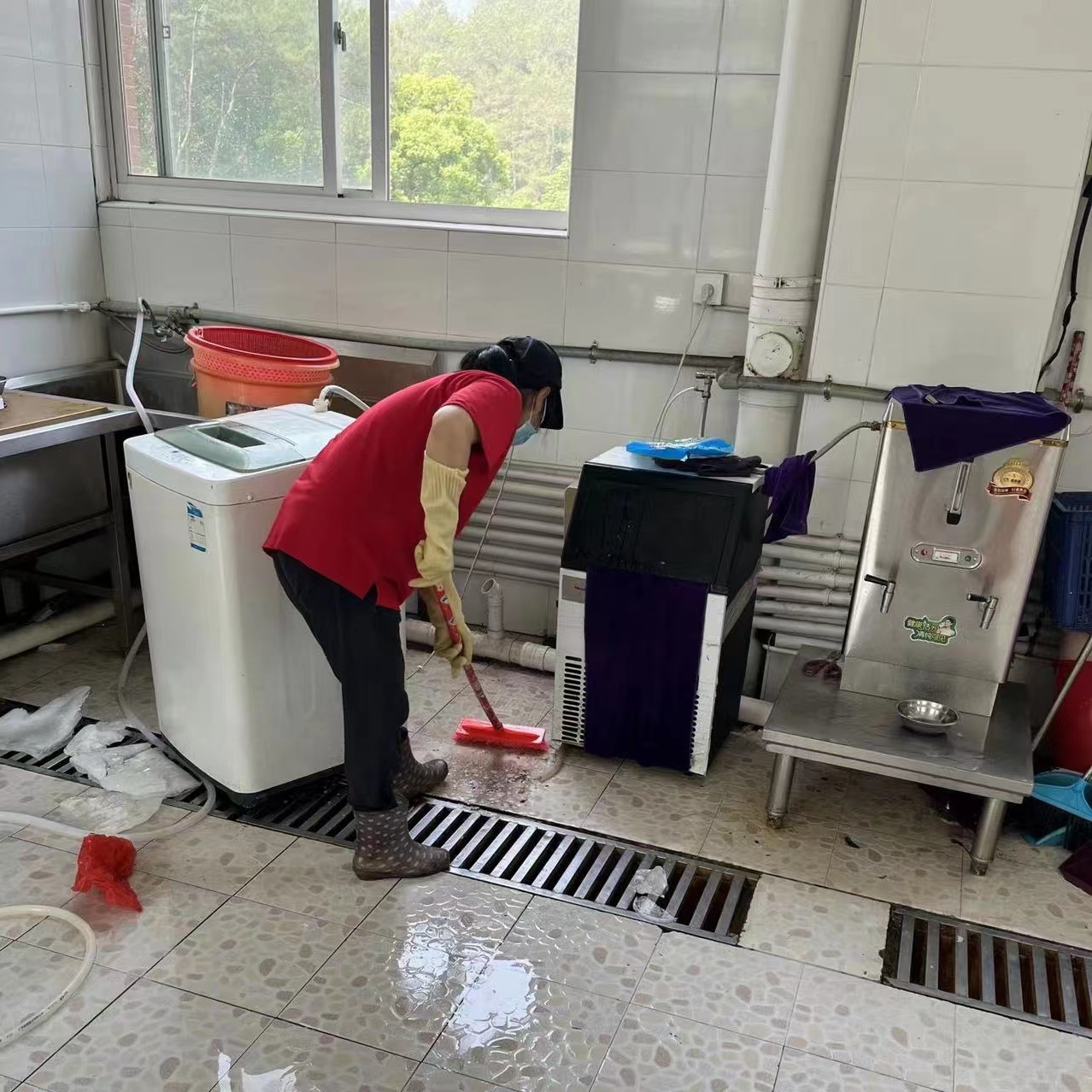 各食堂管理人员将卫生死角、盲区作为重点清理对象进行全面细致彻底的卫生大扫除,工作人员仔细清洗油烟管道、厨房机械、冰箱等,用钢丝球刷洗工作台、货架的每一处顽固污渍,全面冲刷餐厅及周边水沟,使食堂环境洁净如初。各超市、理发店等后勤保障单位也忙得热火朝天,认真地对各自区域进行全面无死角的大清扫,给师生提供了安全、干净、舒适的学习工作环境。