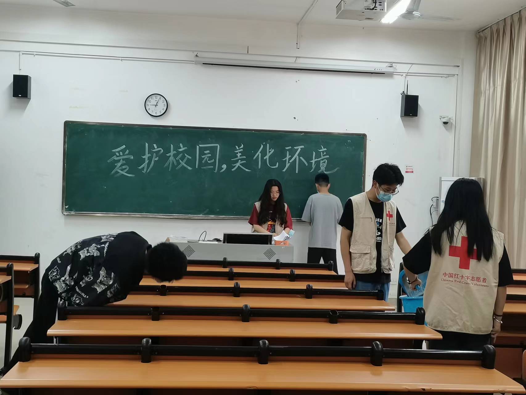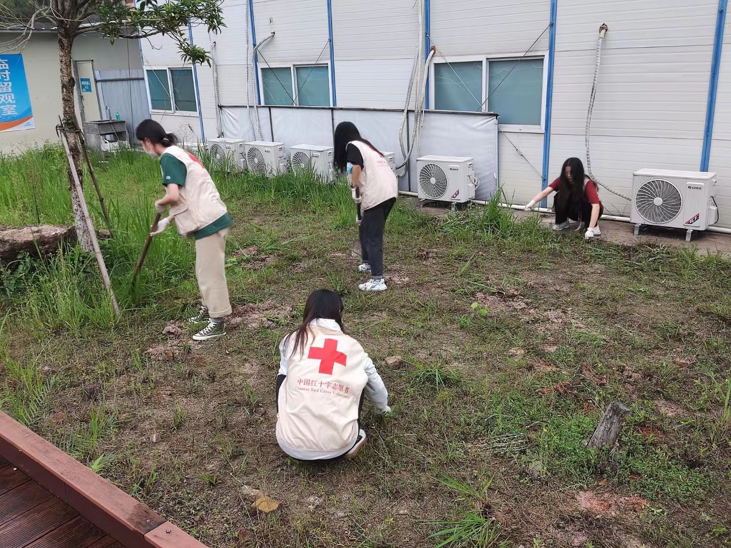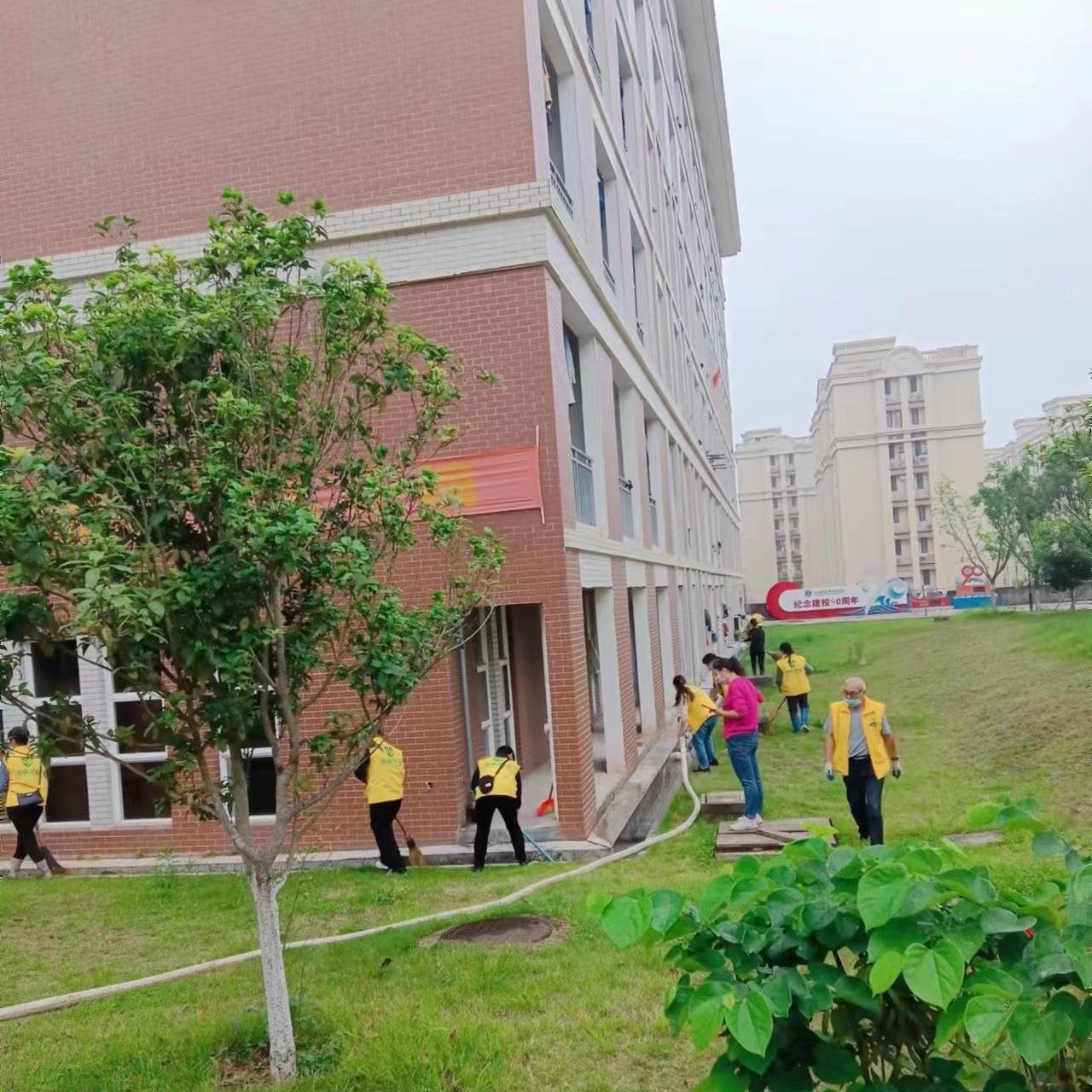 为强化卫生防护,红十字志愿者服务队组织30余名志愿者积极参与到本次活动中。志愿者们分工明确,各司其职,不怕累,不怕脏,有的清扫综合楼里的教室,有的清理翠竹园绿化带中的“脏物”并清理出来,有的抡起锄头铲除临时留观区周边绿化带的杂草......经过2个小时的努力,校园环境焕然一新。