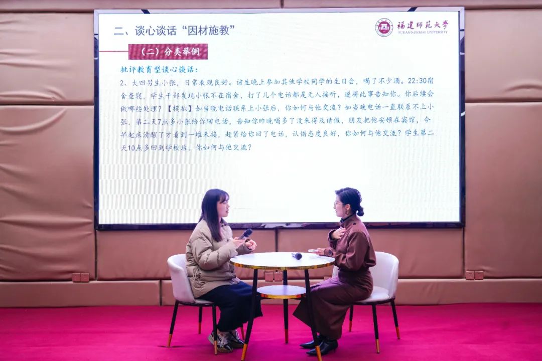 12月27日下午,学校举办第二十三期辅导员匠心讲堂,第九届全国高校辅导员素质能力大赛一等奖获得者、福建师范大学辅导员李珍老师为全校专兼职辅导员带来了一场题为“学生工作中不同场景下谈心谈话的艺术与技巧”的精彩专题讲座。讲座中,李珍老师围绕谈心谈话的艺术与技巧,分享自己作为思想政治辅导员的丰富经验。她深入剖析在不同场景下的谈心话术方法,结合经典案例进行现场模拟,展示针对不同学生问题和需求的应对策略。讲座内容直面辅导员工作中的实际问题,...