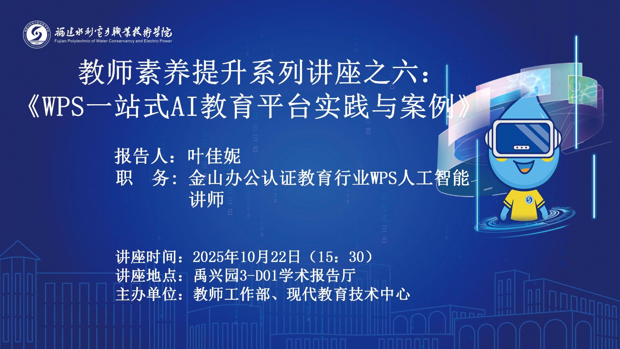 报告人简介:叶佳妮,金山办公认证教育行业WPS人工智能讲师,在WPS应用领域有着丰富的培训经验, 累计为教育行业设计并执行20余场专题培训 ,覆盖从基础操作到高阶效率技巧的全流程教学,课后满意度均保持在95%以上。