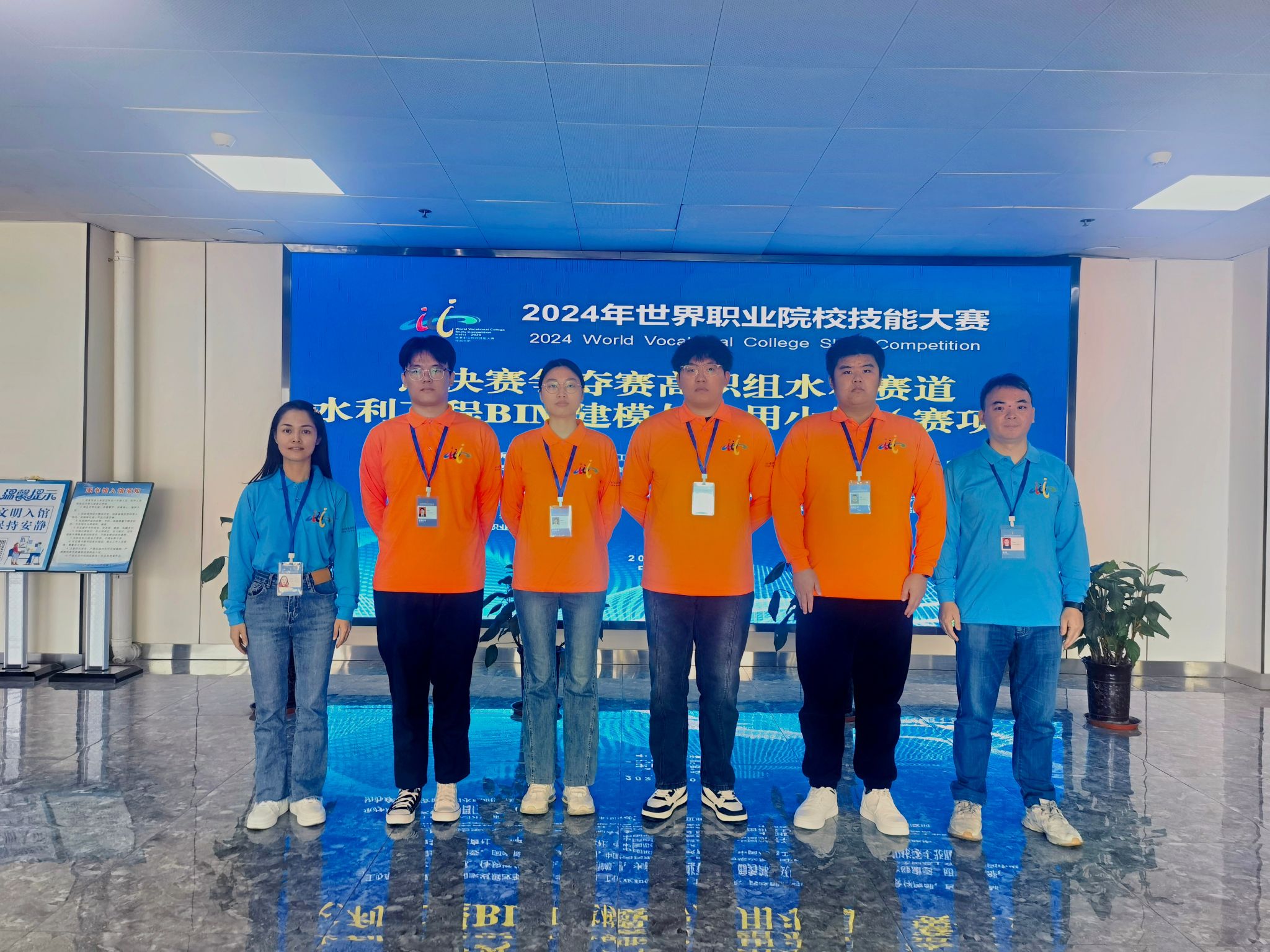 2024年10月29日至31日,在安徽水利水电职业技术学院举办的全国水利职业院校技能大赛争夺赛中,我校肖绍文、张子映老师带领的学生团队(黄榮欣、陈克威、洪勇、周裕恒)以《基于BIM技术的水闸模型创建与应用》项目的优秀表现,获得高职组铜奖。