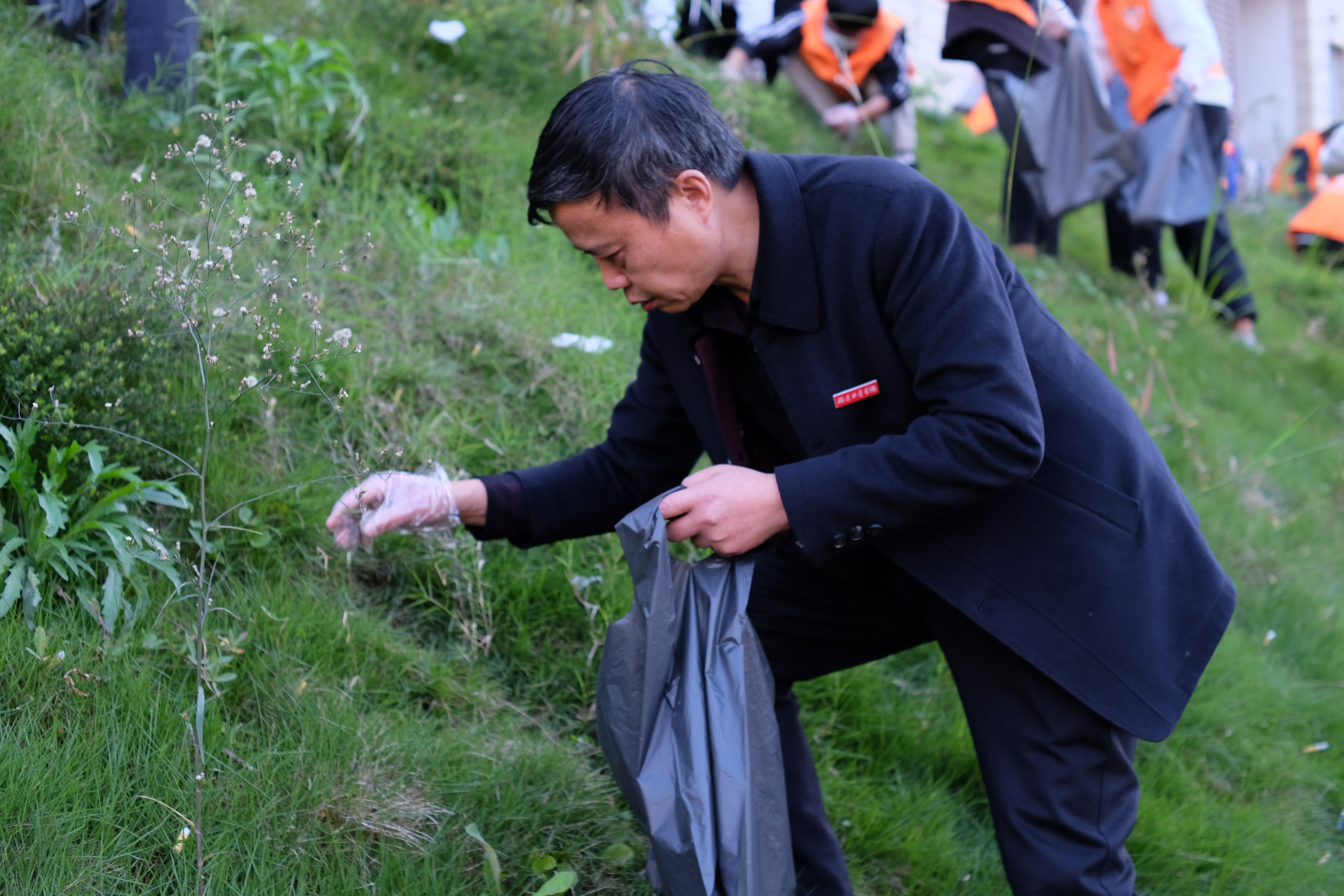 在学生公寓12号楼草地,捡拾垃圾的劳动现场