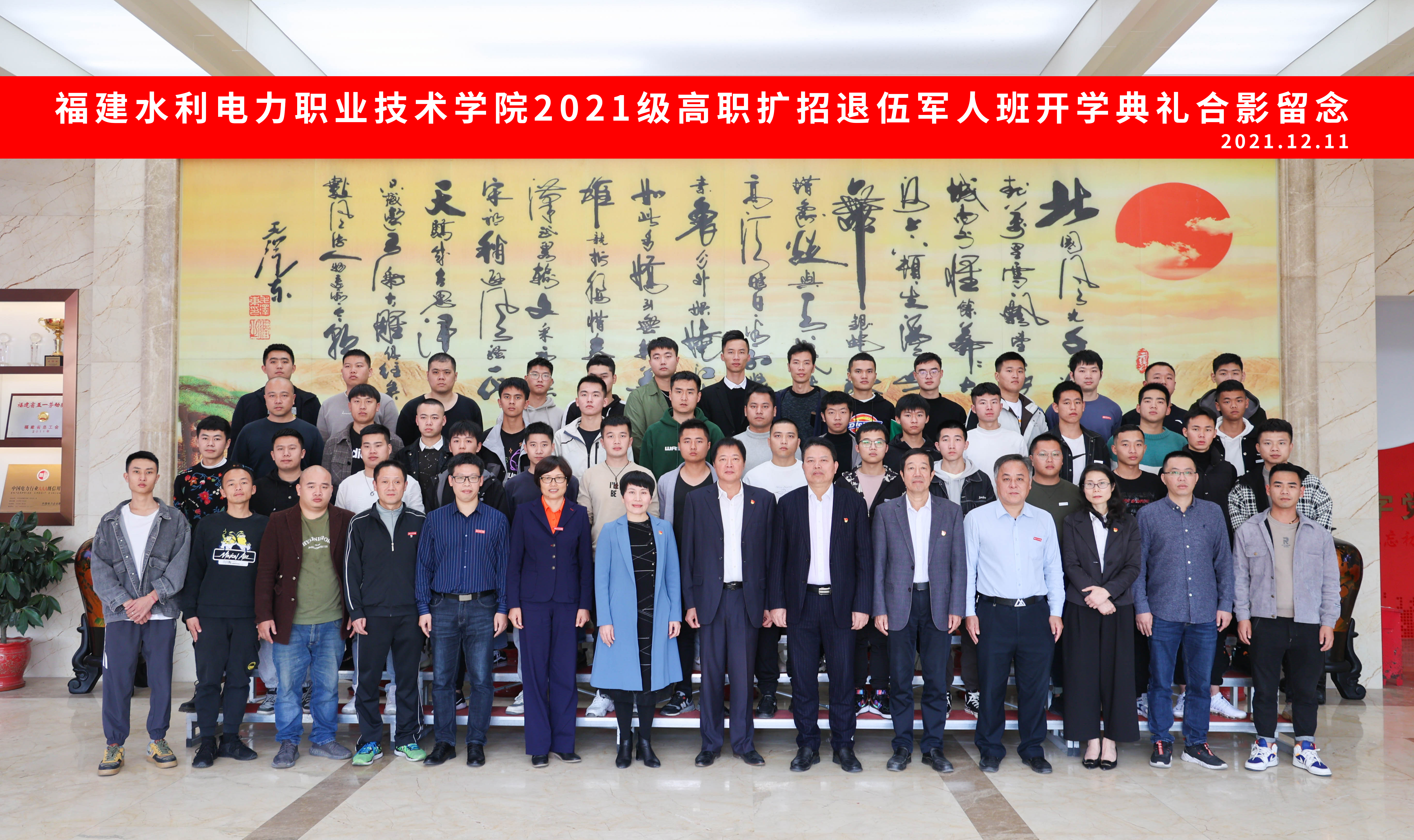 在庄严的国歌声中,典礼拉开帷幕。庄伟廉代表全体师生向高职扩招批次电力系统及自动化专业的50名新生表示热烈欢迎,对福建省退役军人事务厅的关心与指导、中国电建集团福建工程有限公司的就业支持表示感谢,并就学院的历史文化、办学实力、专业特色等方面做了全面的介绍。他说,退役军人是党和国家的宝贵财富,值得倍加爱护,学校有责任和义务为同学们提供优质的教育资源,为同学们的成长成才营造良好的育人环境。他对同学们提出三点期望:要珍惜机会,勤奋刻苦地学习技能本领;要永葆军人本色,退役不褪志,退伍不褪色,以优异的成绩回报和服务社会;要勇于克服困难,适应教学新模式,做到工学共进。