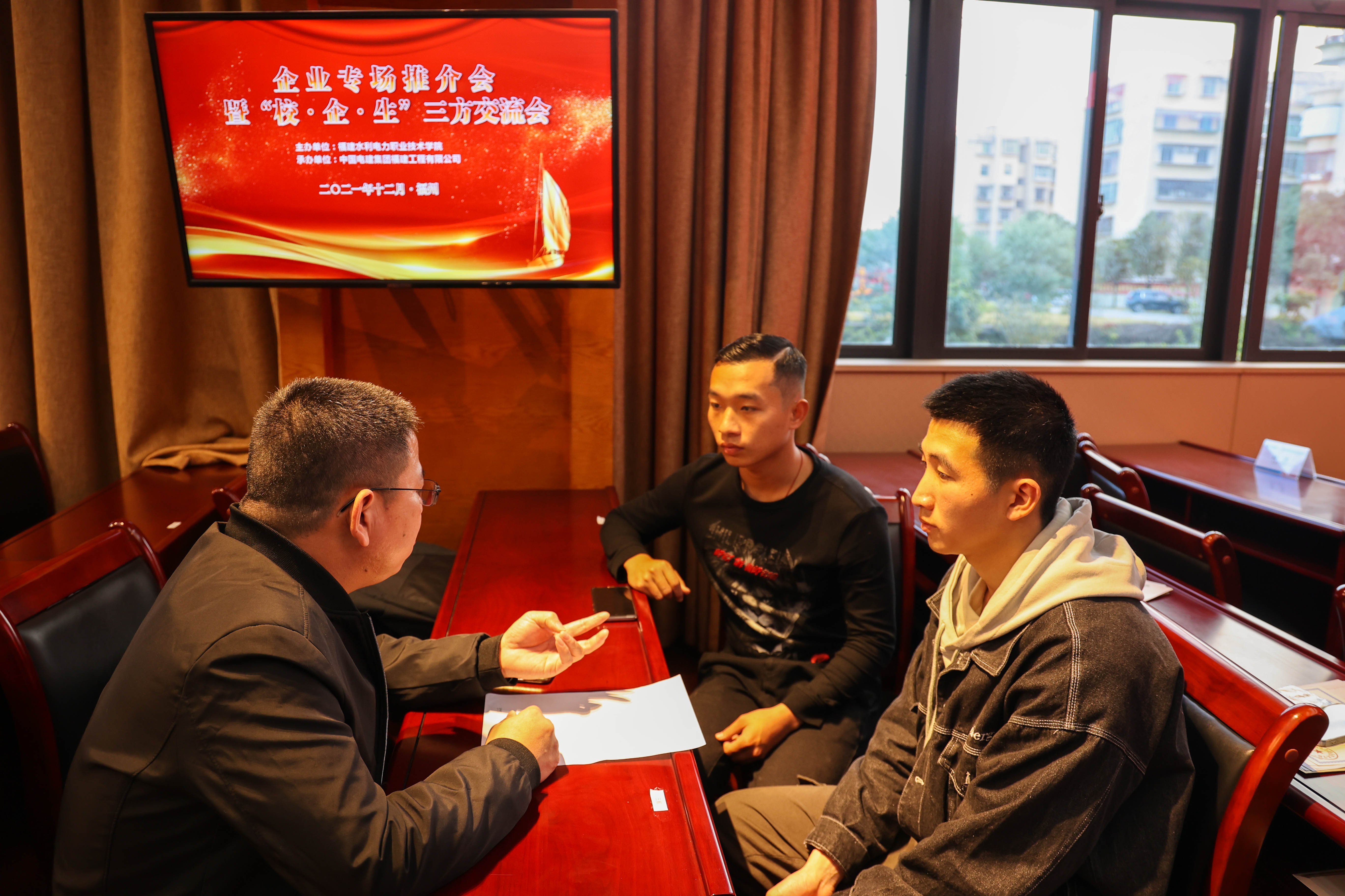 林炳润表示,作为中国电建集团驻闽骨干企业,将以高度的政治自觉与强烈的责任担当,积极响应国家扩招政策,尊崇厚爱退役军人,用心用情用力促进退役军人就业工作,做好服务保障。他还介绍了企业基本情况、岗位需求、员工发展路径等,并在企业推介会暨“校·企·生”三方交流会上对学生的咨询一一解答,希望新生们能珍惜学习机会,也欢迎他们与企业签约就业。