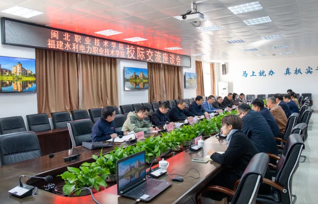 11月9日下午,闽北职业技术学院党委书记谢友平、院长叶世森等一行10人来校交流访问。学院党委书记庄伟廉、院长杨元挺,副院长杨武盖及相关处室负责人参加了座谈会。
