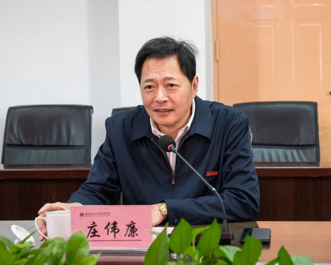 座谈会上,庄伟廉代表学院对谢友平书记一行的到来表示热烈欢迎,并向来宾介绍了我院历史沿革、校园建设、党建思政、人才培养等方面的基本情况和近年来学院快速改革发展的关键举措。庄伟廉表示,贵我两校均创办于1929年,都有着悠久的办学历史和深厚的文化积淀,两校分别在闽北和闽中山区办学,为地方经济社会发展也都做出了不俗的贡献,作为兄弟院校在诸多方面面临着共同的机遇与挑战,理应加强交流与联系,互通有无、相互帮助,拓宽合作领域,推动两校教育事业共赢发展。