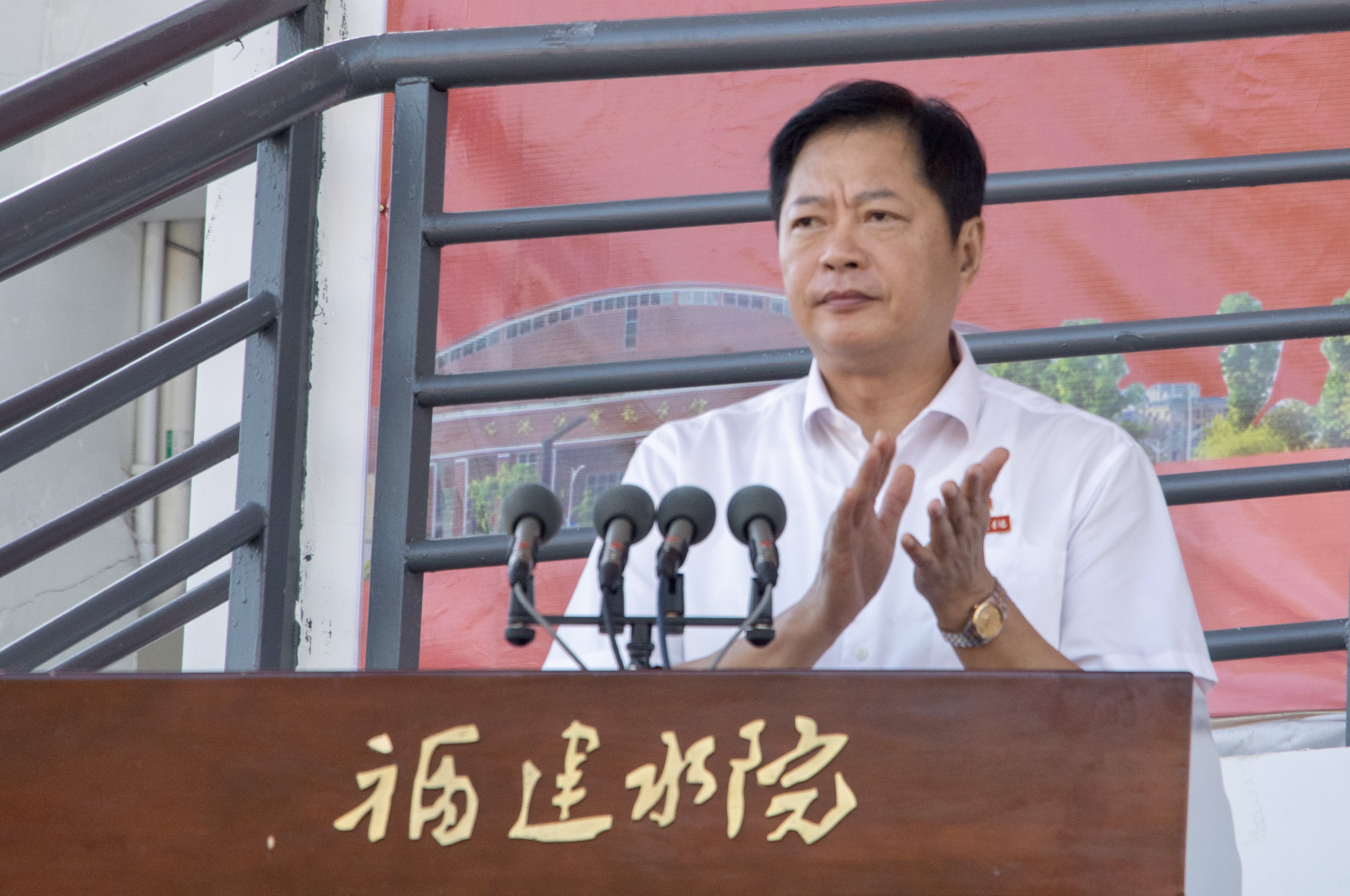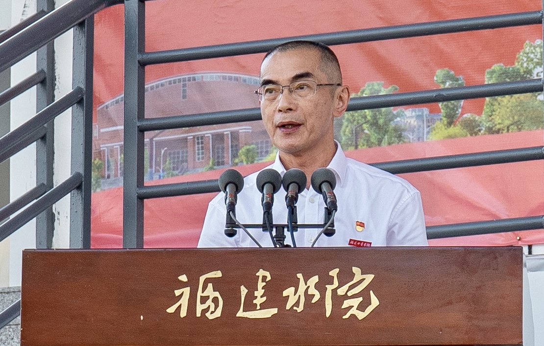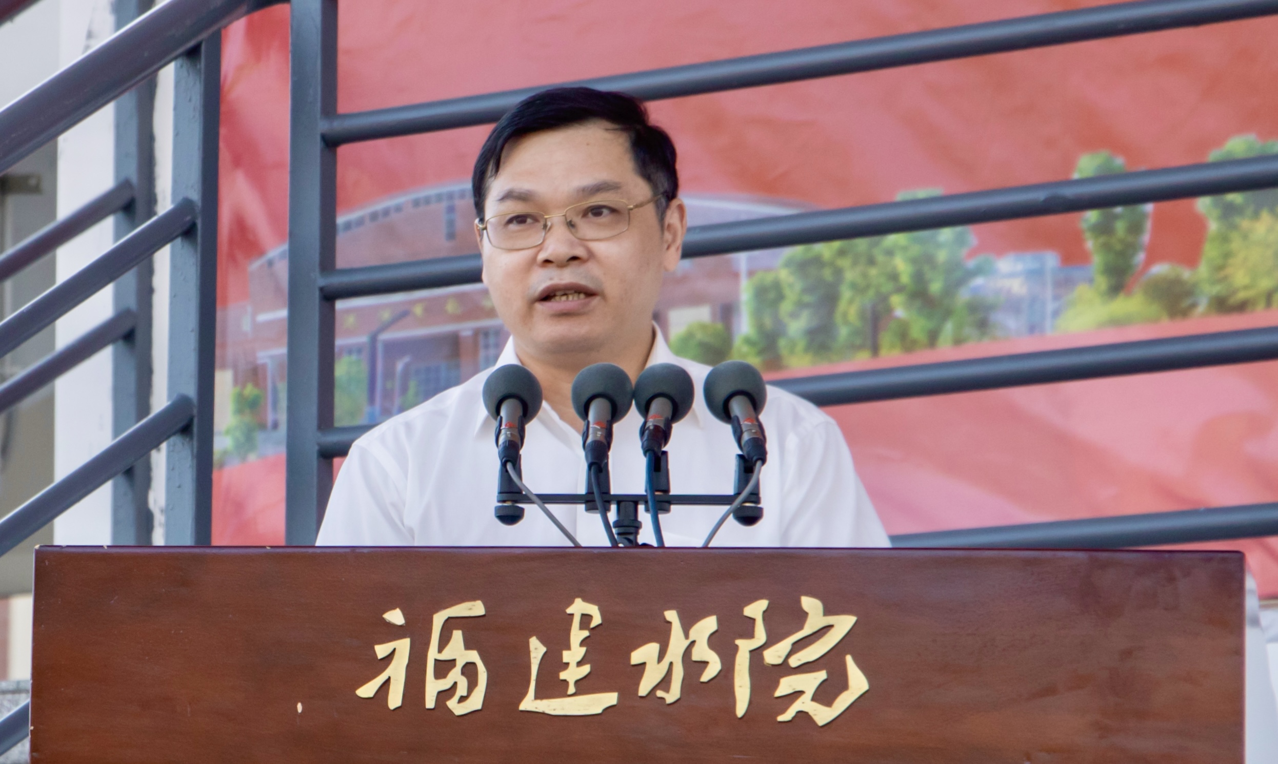 最后,党委书记庄伟廉为新生们上了开学思政第一课:《与时代同行、与祖国同在》。他说:“今年是中国共产党百年华诞,回首过去的100年,在每一次事关国家前途、民族命运的历史变革中,中国青年都坚定站在时代的前沿,用理想之光、信念之火激励自我,选择与时代同行、与祖国同在。”他希望同学们要成就好的学问、好的品德和体魄、好的境界,同时要听从时代引领、祖国召唤,胸怀远大理想、勇担历史使命,在水院造就不平凡的学习生活,成为一个优秀的福建水院人!