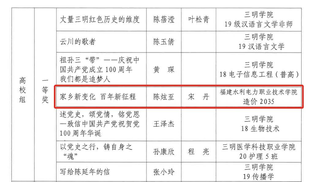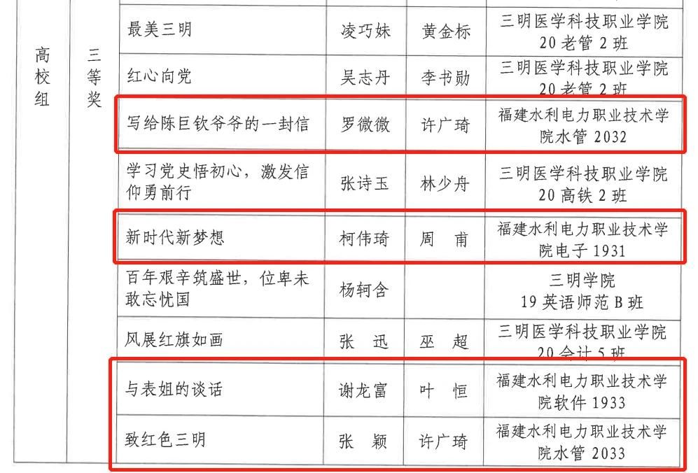 近日,三明市学生“知党史 铸信念”征文评选活动公布获奖名单,我院学子获得高校一等奖1篇,二等奖、三等奖各4篇。