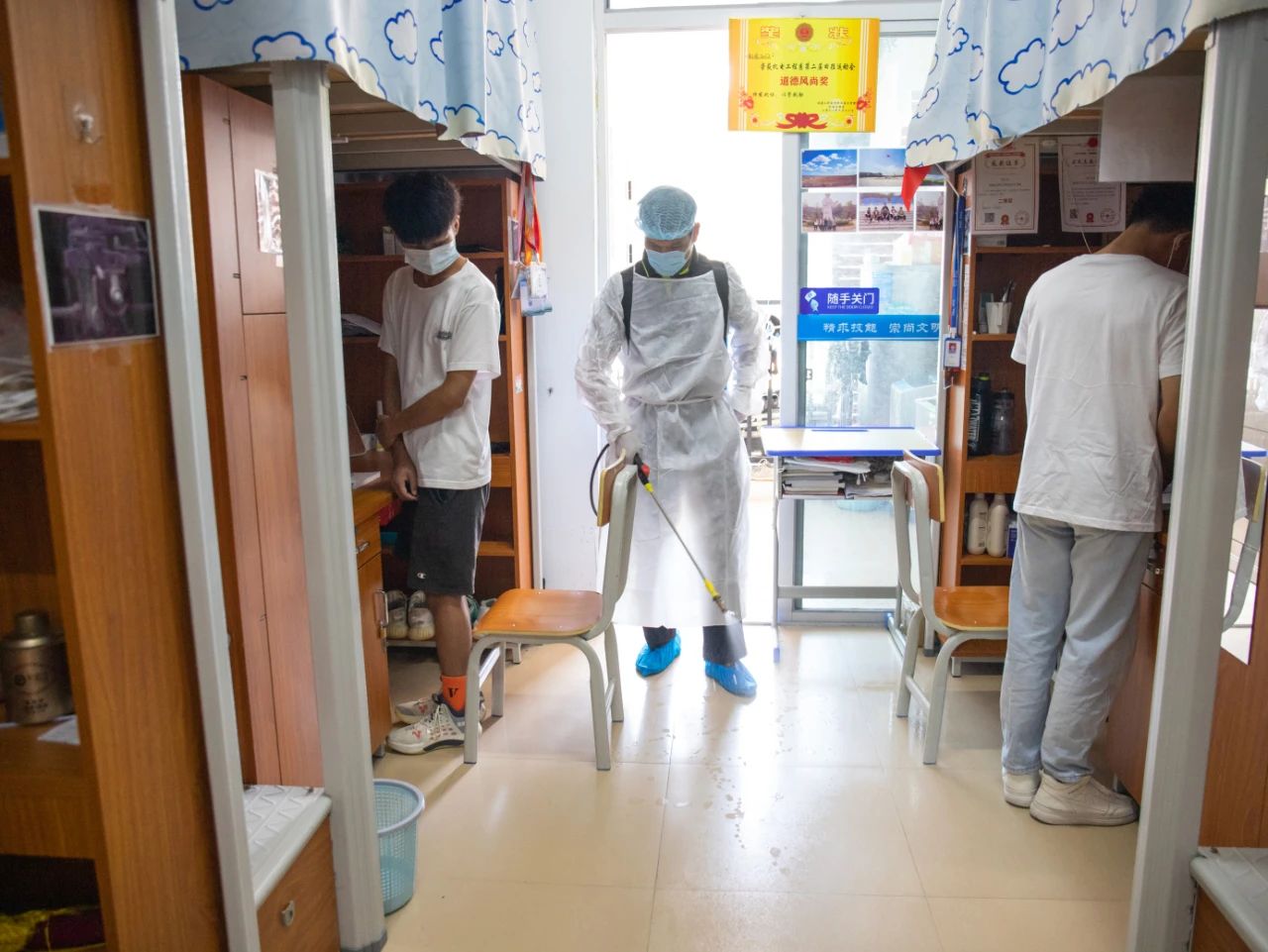 后勤处处长章春宁进行演练培训并宣布疫情演练开始,各相关人员根据《秋季返校防疫新冠肺炎疫情应急演练方案》,按照体温检测、出现“疑似”患者、隔离询问观察、相关部门应急处置、联系“120”转诊、专业消杀、跟踪调查、疫情上报、启动应急预案、校内应急处置等流程进行,参与演练的工作人员紧密配合、有序衔接,做到流程标准,应对措施明确,取得了预期效果。