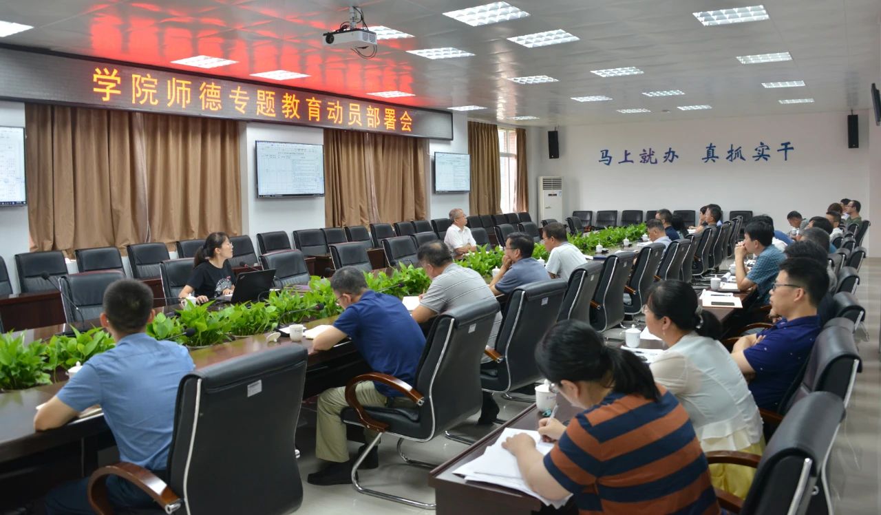 6月23日下午,学院召开师德专题教育动员部署会议,学院副院长池长全出席会议并讲话,各部门负责人、各专业系党政负责人、马克思主义学院院长、公共基础部主任参加会议。